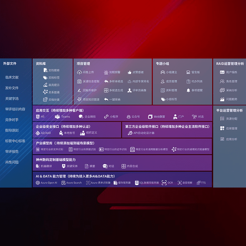 医疗器械产品上市前,,,,要熟悉严格与繁复评审标准,,整理分析监管机构指导文件中的海量信息。。。企业急需一个智能化解决方案,,,提升知识管理效率,,,,提高评审通过率,,,,以提升其市场竞争力。。。